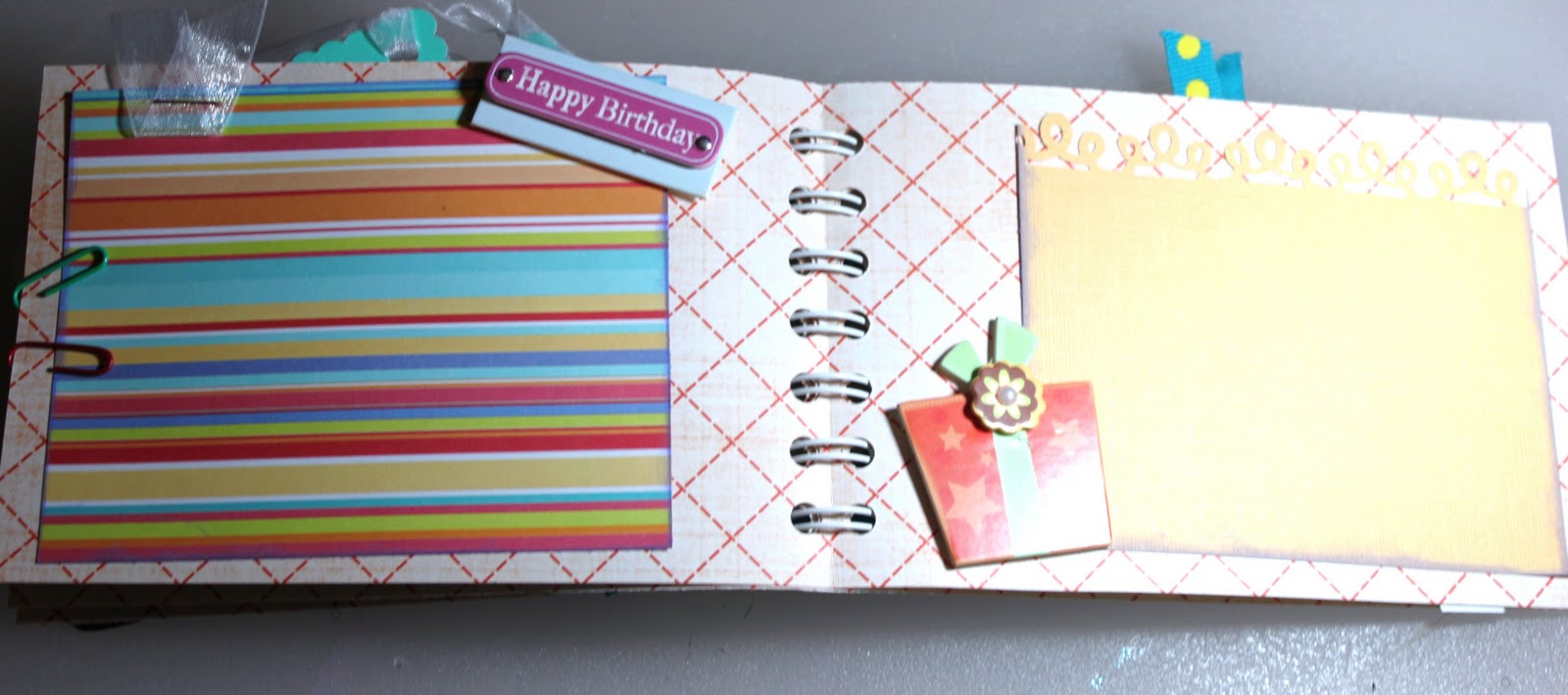 Well, its been a couple of weeks since I have posted anything for you guys. I am an Accountant, and as you know this time of the year is Caotic. I did manage to slip to the scrapping cove this weekend and make some items. This album is 4 x 6 and is a Happy Birthday theme book. Could be used for a girl or boy. I used mostley primary colors so it could work for both genders. The clown was a svg file I had from TBD. I stamped his face with Peachy Keen face stamps. Used my Cinch to bind it. Simple, but I wanted to show you a little of what I had a chance to do.