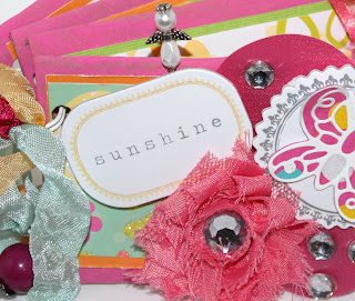 Darling mini album- lots of work!!! Love the big Pink flower and all of the stamped embellishments!